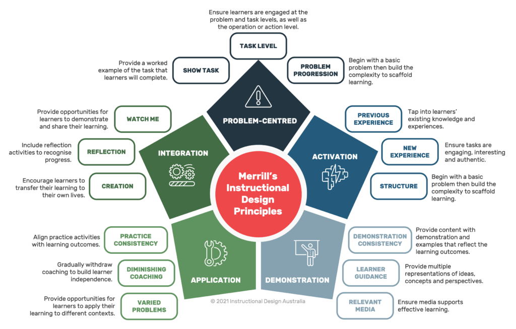 Discover Learning Designs. (2021, June). How to apply Merrill’s instructional design principles. https://discoverlearning.com.au/2021/06/how-to-apply-merrills-instructional-design-principles/